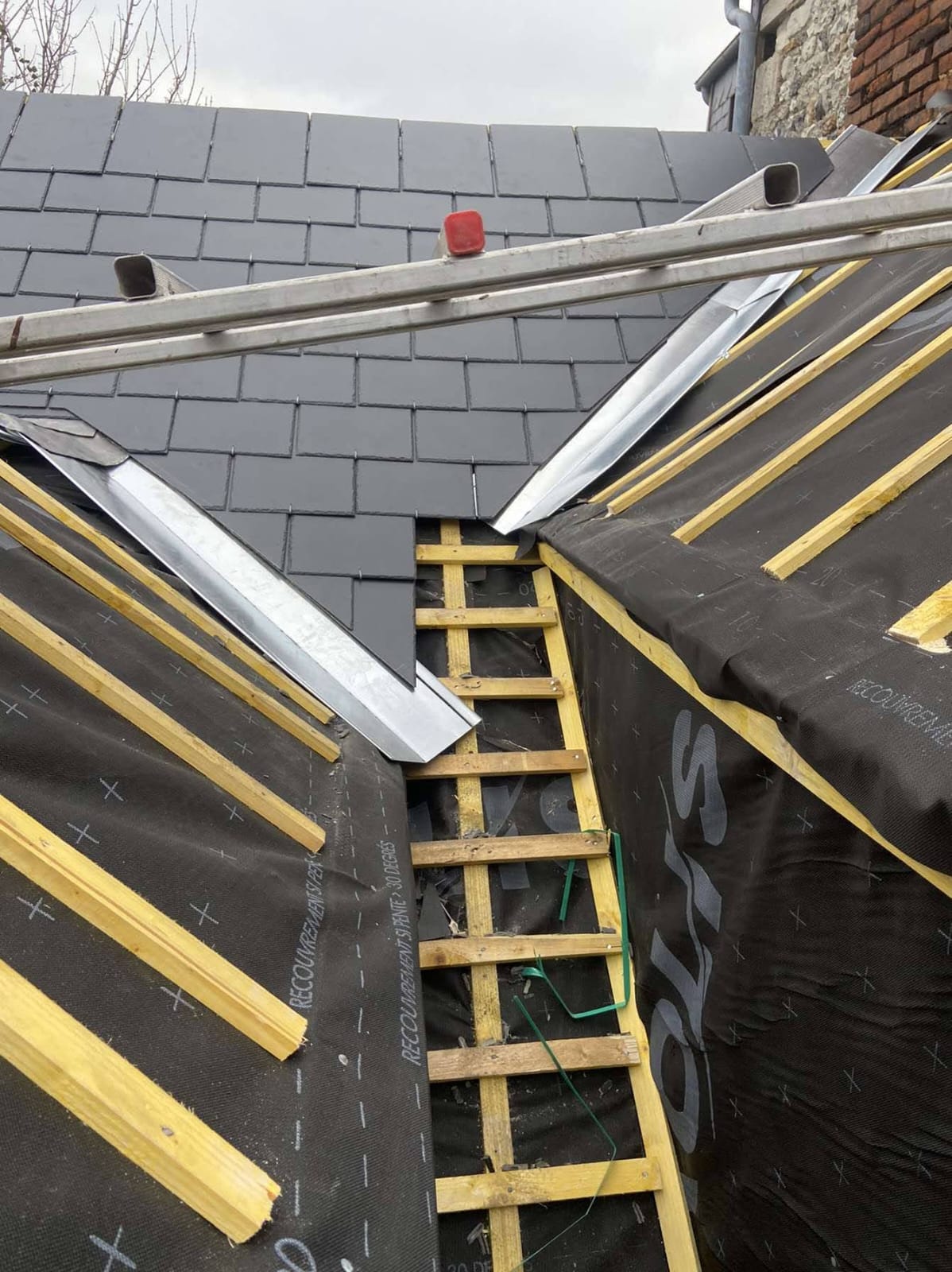 La réfection complète ou partielle de toiture en tuiles, ardoises, bac acier, zinc ou cuivre.